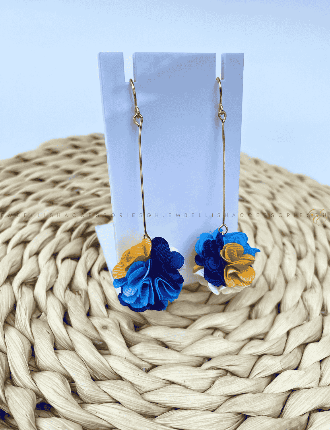 Turn heads with our stunning blue multicolour flowery earring expertly handcrafted with delicate floral details and gold finishing’s. Earring is 2.5inches long but lightweight and extremely comfortable to wear. It’s the perfect companion for brunches, weddings and other fun events.