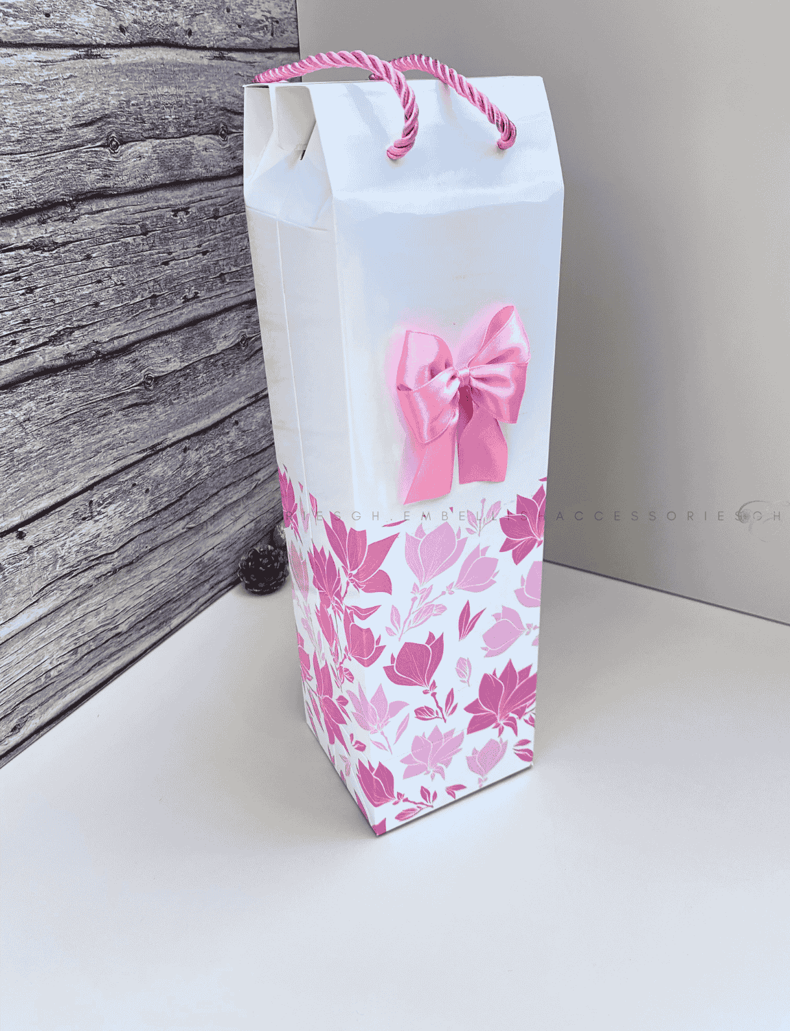 This pretty Flowery fabric box easily packages 6yards African print fabric or a bottle of wine. Dimensions: 4*4*15inches