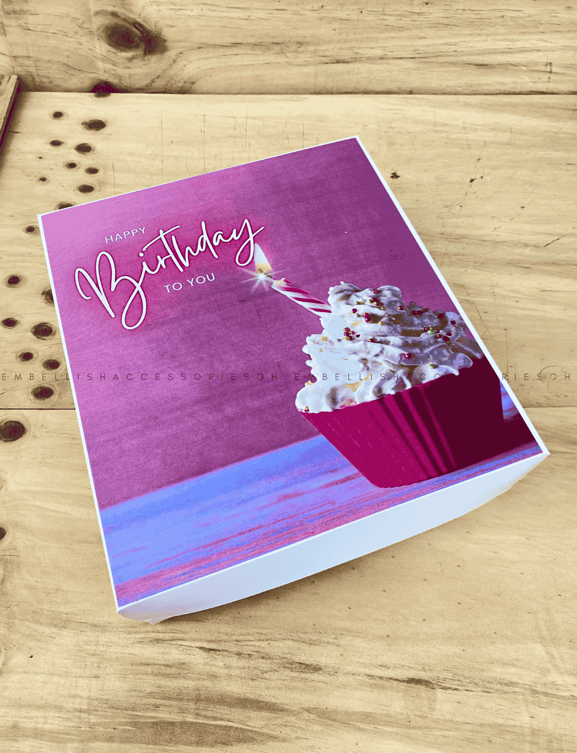The mini birthday gift box is perfect for packaging small gift items. Box is made with 350gm paper and should be handled with care to prevent damage. Dimensions: 9*8*2.5inches