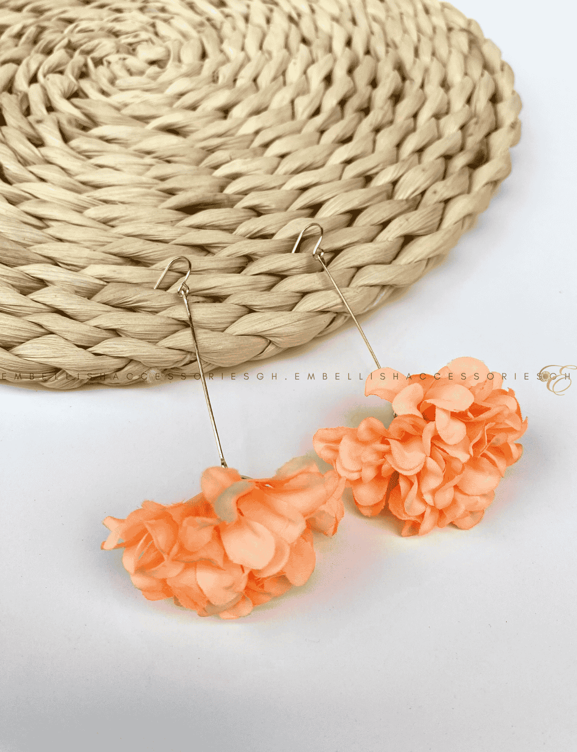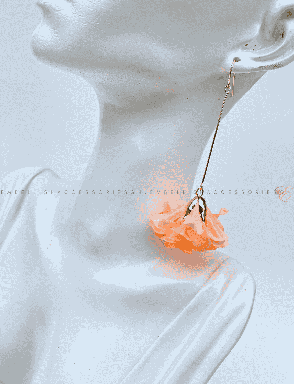 Turn heads with our stunning peach flowery earring expertly handcrafted with delicate floral details and gold finishing’s. Earring is 3inches long but lightweight and extremely comfortable to wear. It’s the perfect companion for brunches, weddings and other fun events.