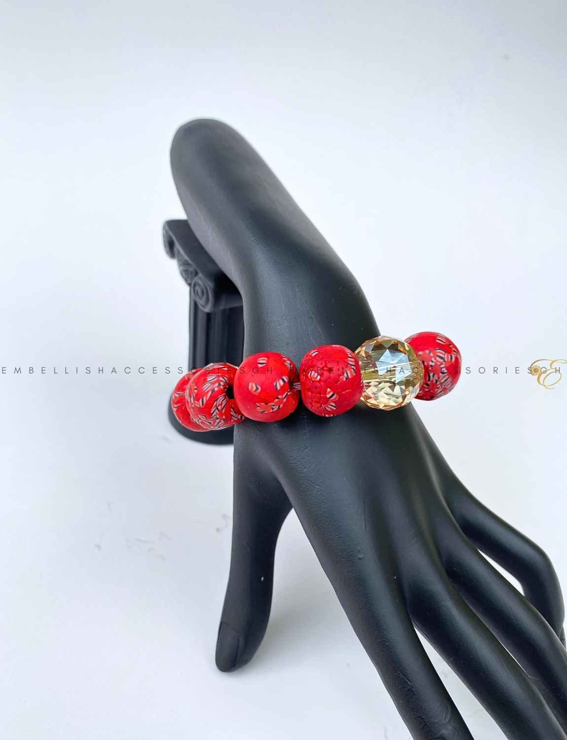 This Red chunky bracelet is made with Ghanaian recycled glass beads and crystals.