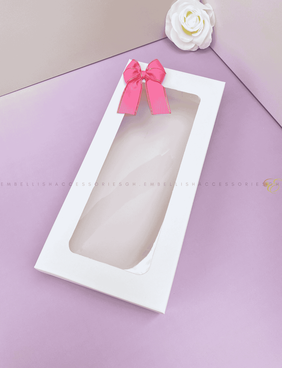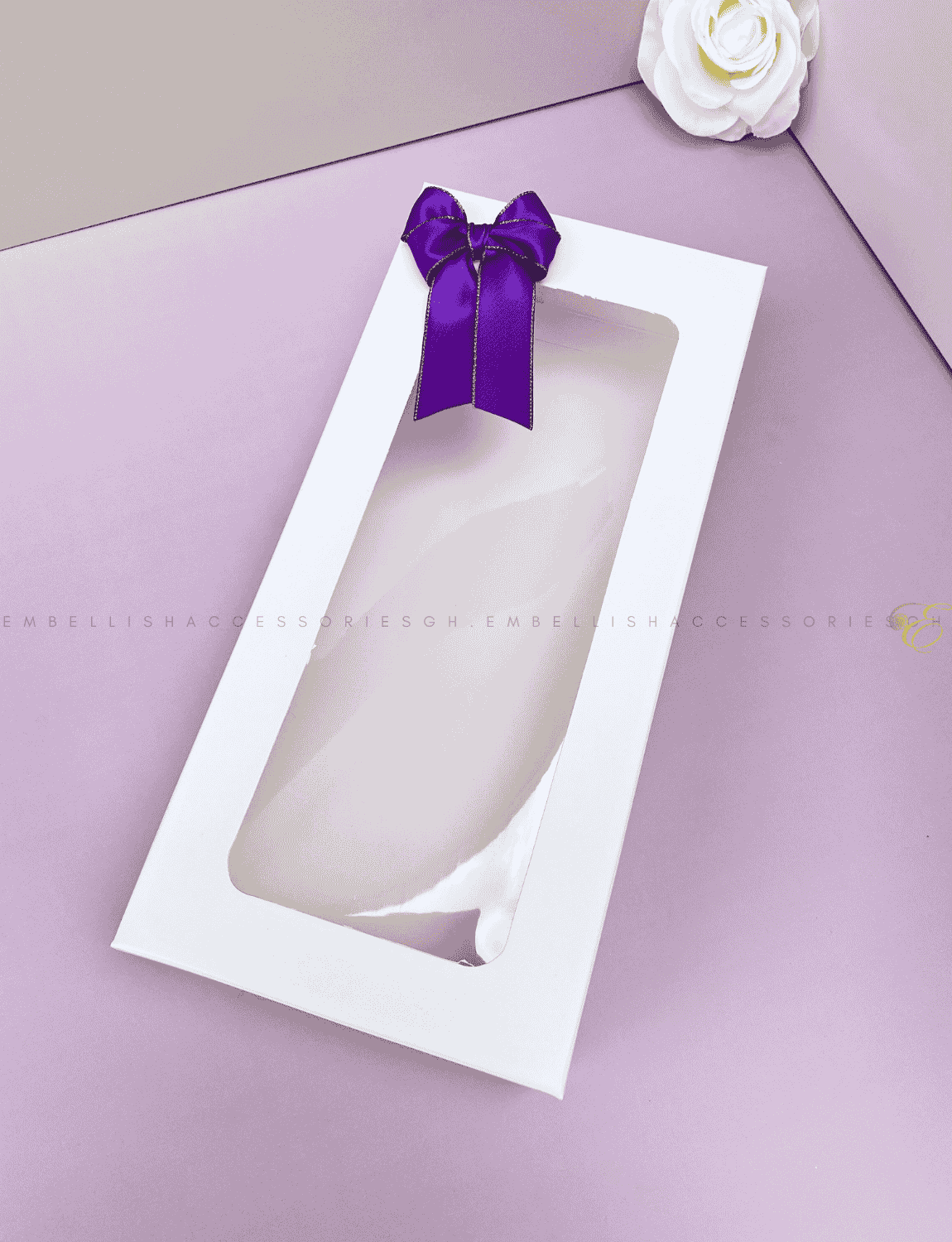 This pretty Transparent fabric box is perfect for packaging 6yards African print fabric. You can also add on a scarf for a perfect fit. The Box is designed to be flat packed making it the best choice if you are hoping to purchase a large quantity without having a large package that could incur high delivery fees. Dimensions: 13*6*2.5inches